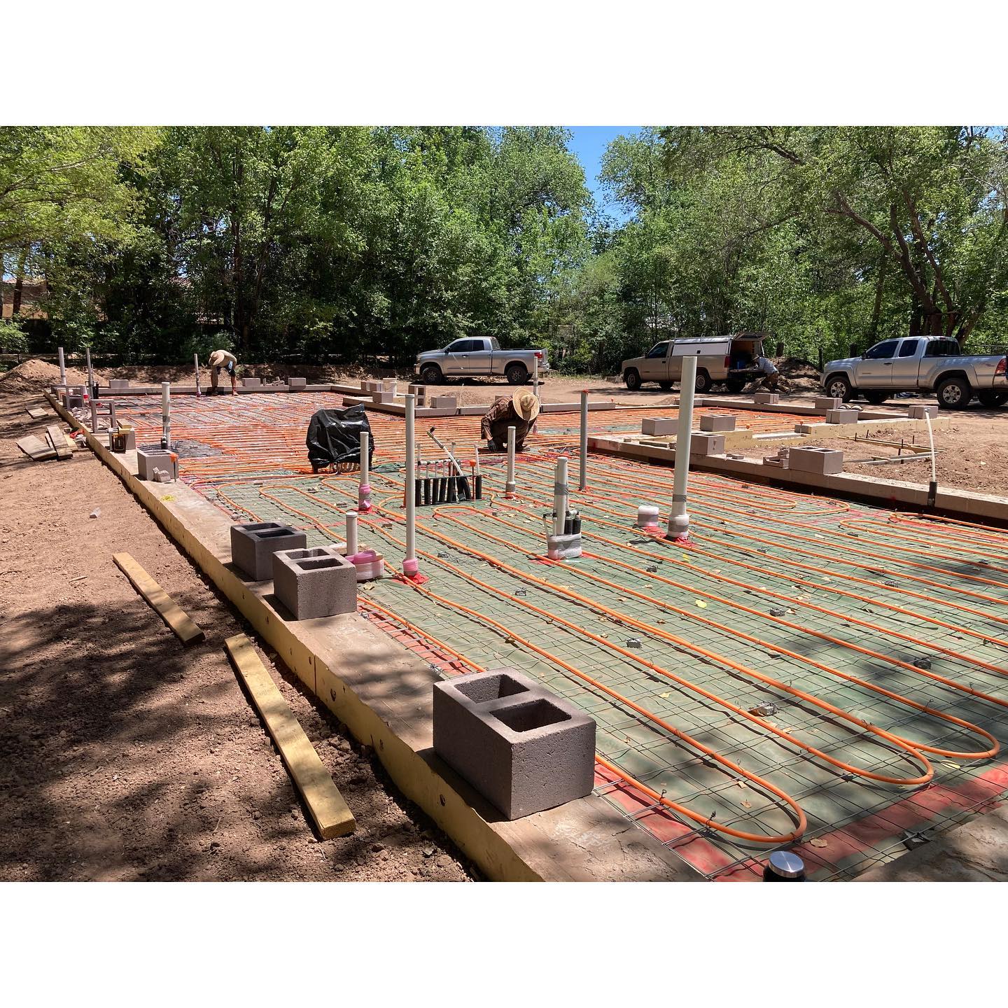 If you’ve ever seen a monoslab all dug out and “ready” to be poured, you can’t help but notice all the fluffy dirt everywhere. I don’t like to see that, and with a stem wall, we always have solid containment around the fill that will support interior grade beams and the floor. So, it is easy to do a really good job with compaction. If we feel that the dirt on site won’t compact well, we bring in quality fill dirt for the building pads. Another nice benefit of using this method is that we use less concrete. Whether your concern is CO2 or just $$$, using concrete wisely just makes sense. I’ve long said that for what it is, concrete is ridiculously cheap. But at $185 a yard, that is feeling less and less true. Nice, carefully dug trenches and a well-graded slab substrate mean it is easier to order the correct amount of mud, so there’s less waste, and you’re not wasting money on filling a bunch of wonky shapes with expensive material. #adobeconstruction #adobebuilding #buildingfoundation #slab #stemwall #adobebuilder #adobes #customhome #masonryconstruction