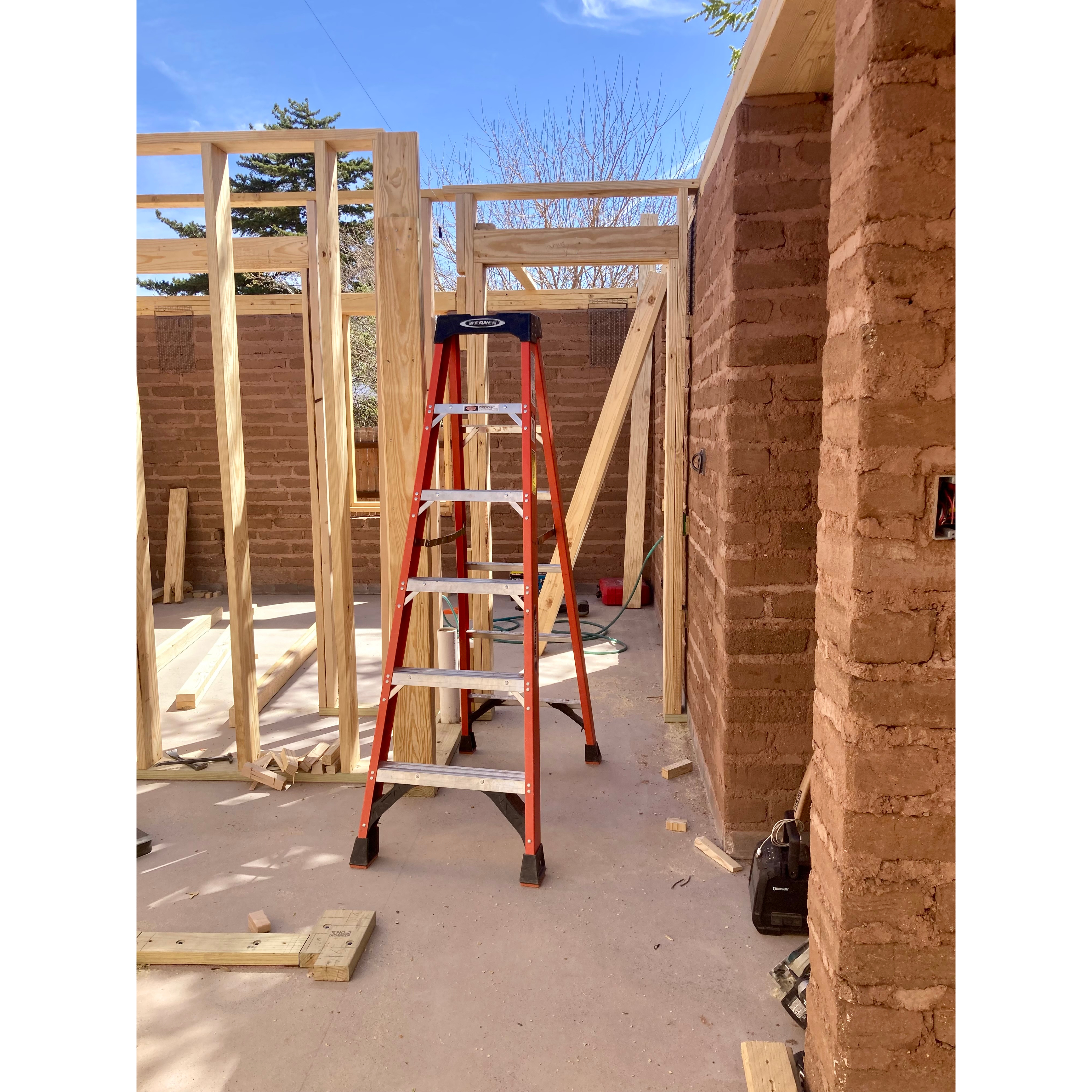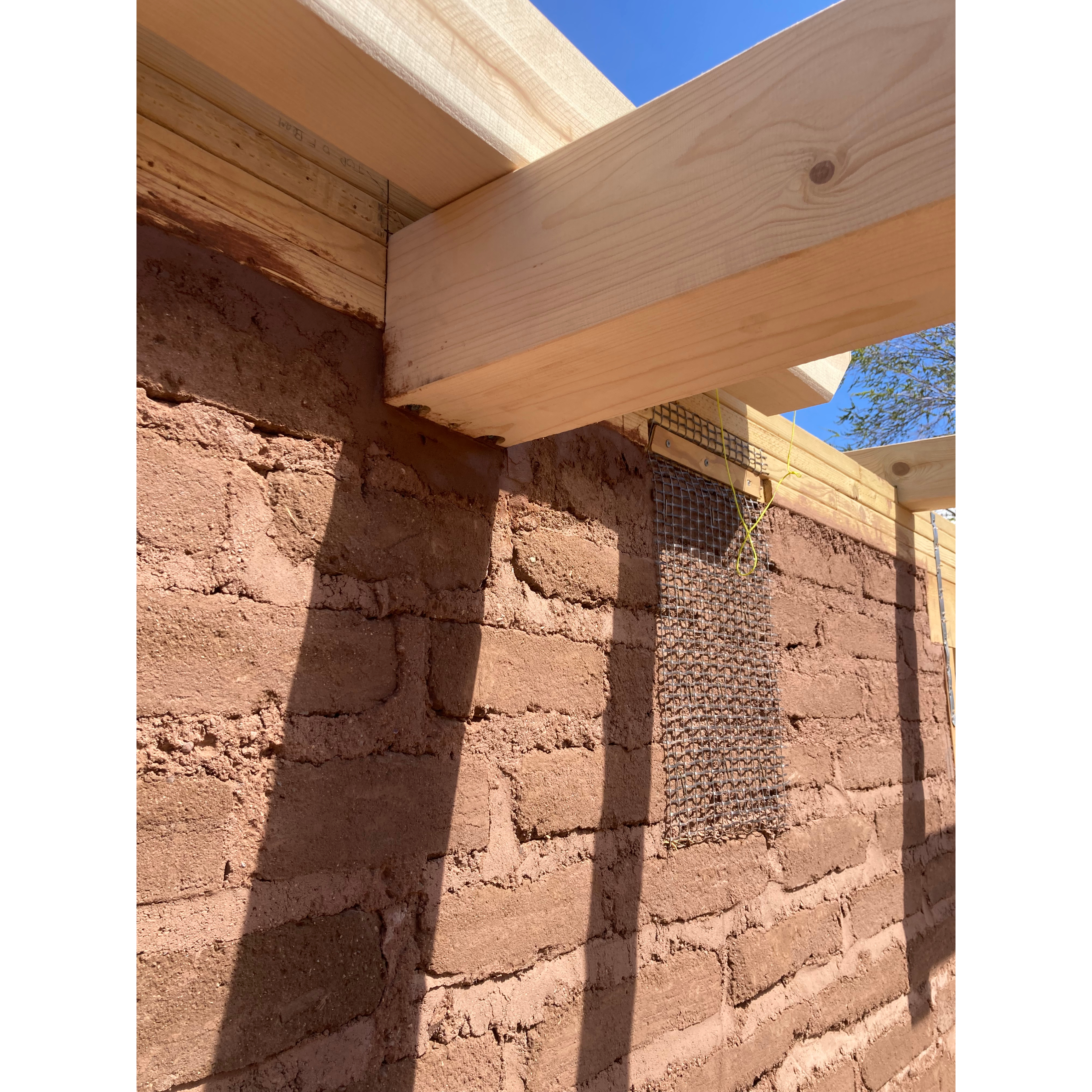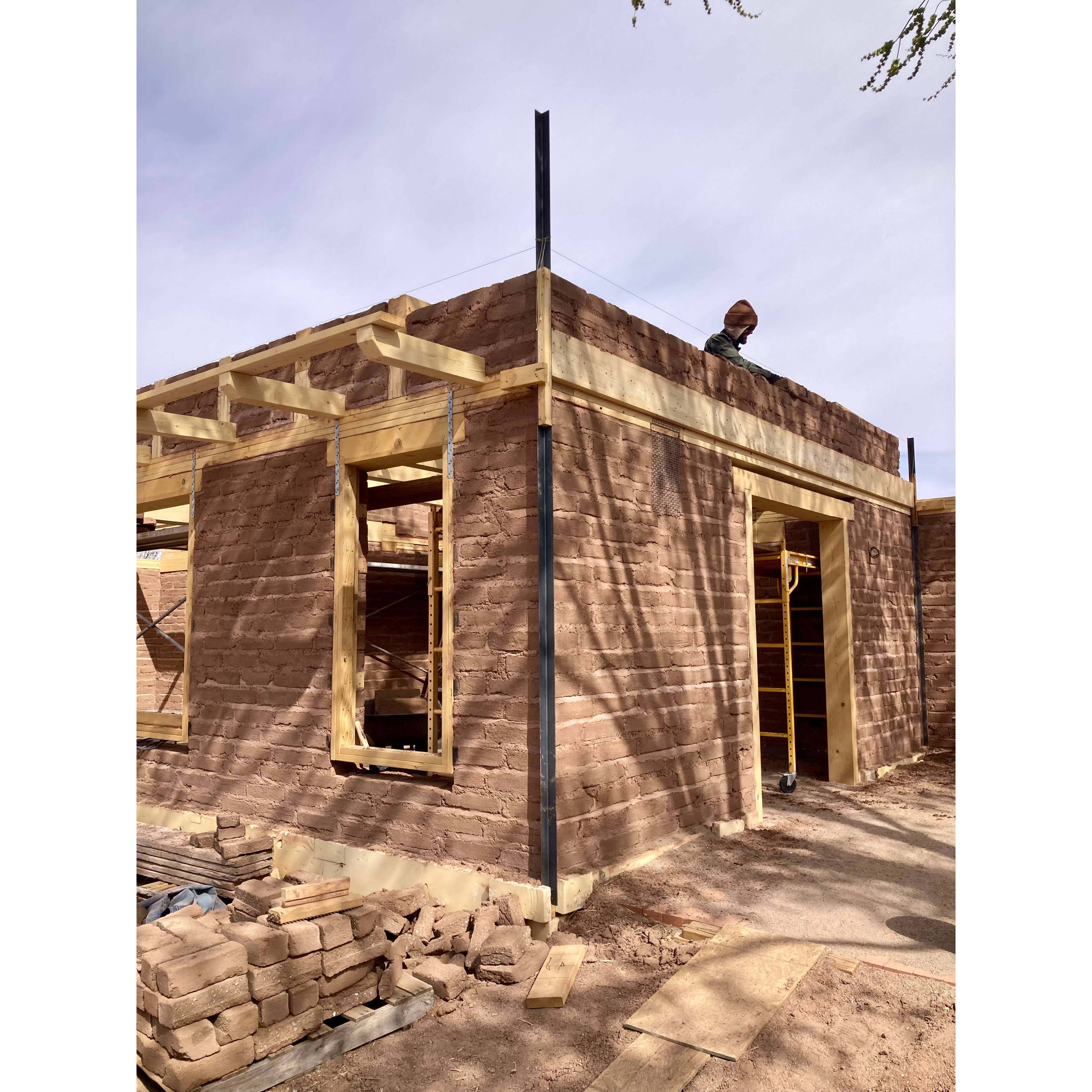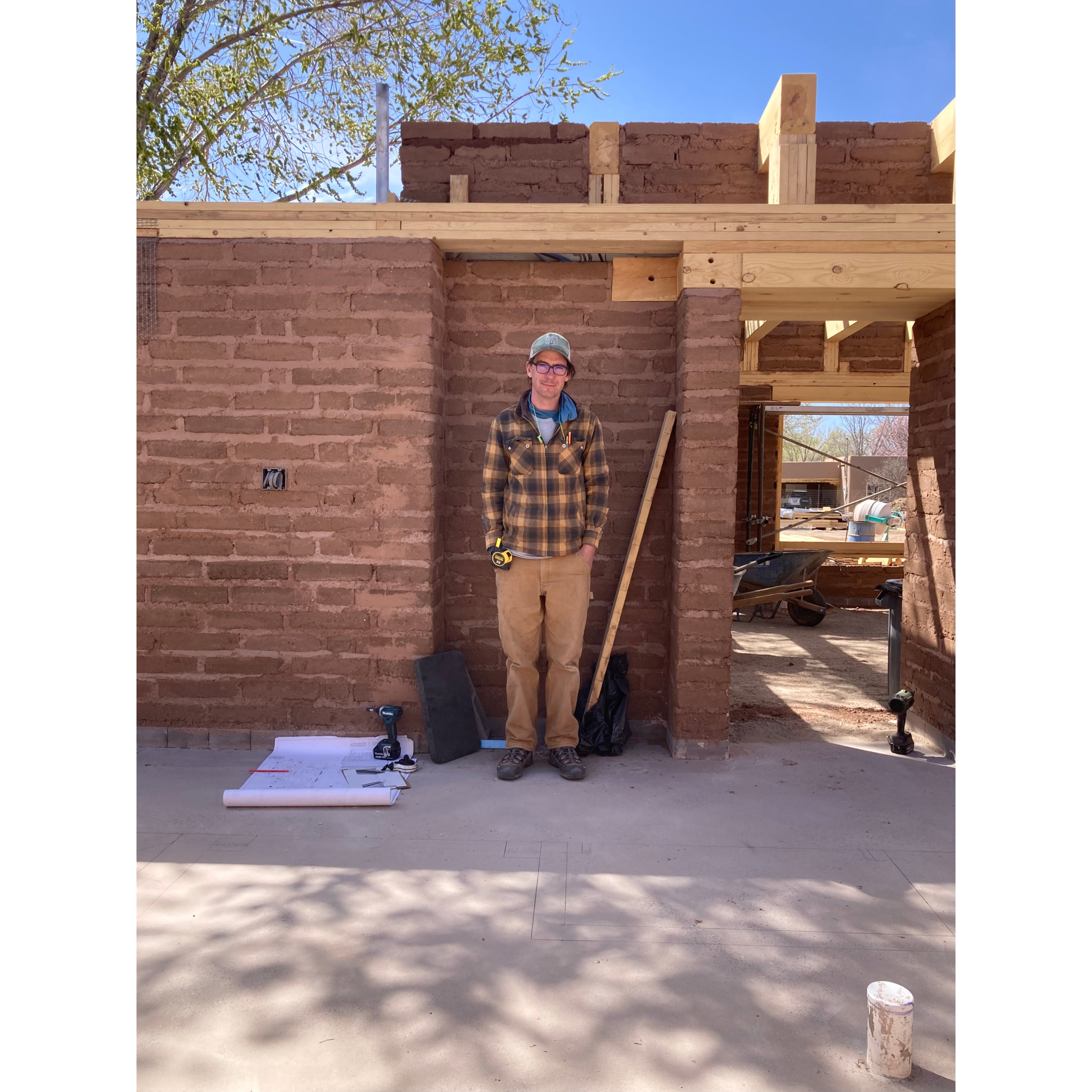 Here’s a bit of what we’ve been up to in the last three months…Ceiling beams, some frame walls, adobe blocking, ceiling decking…