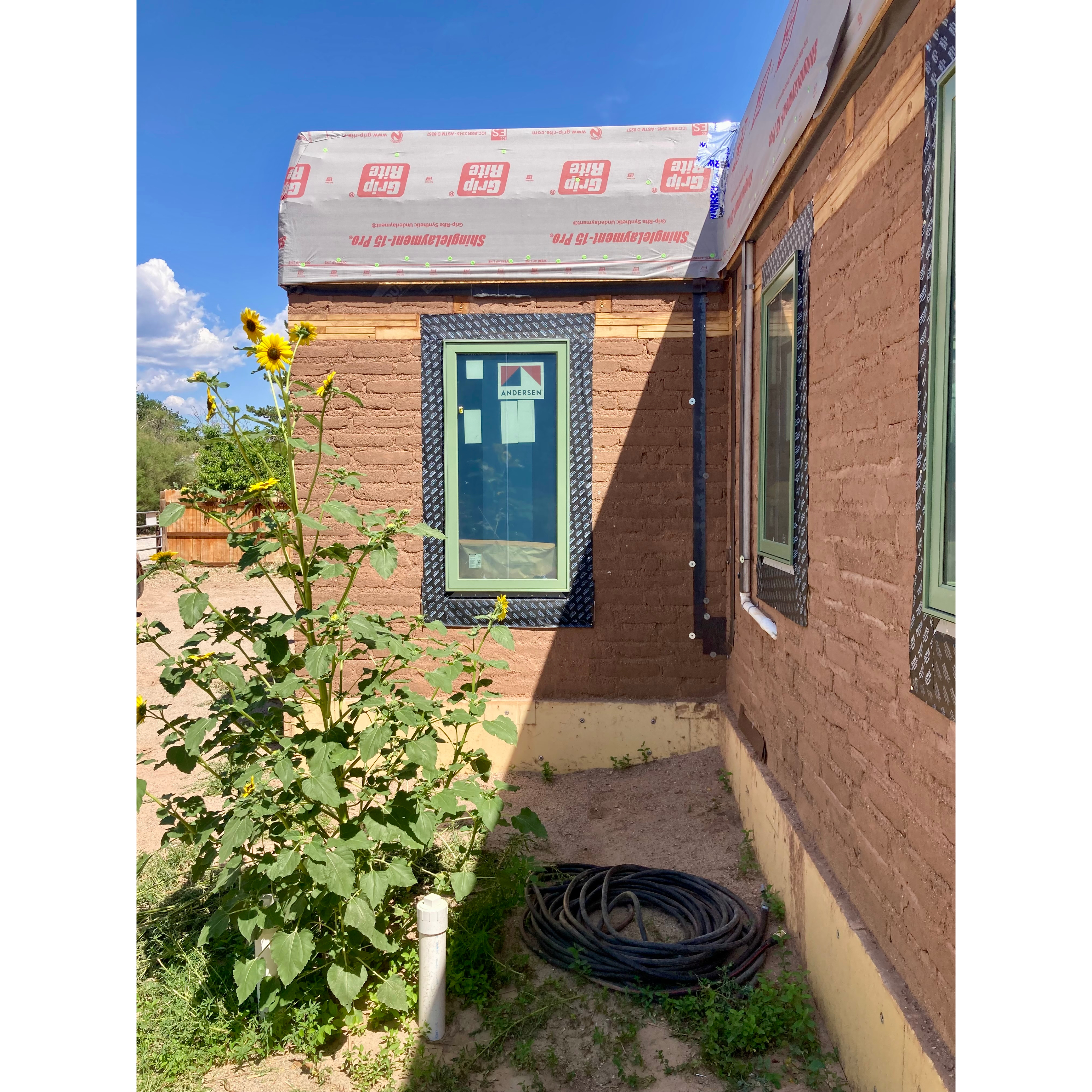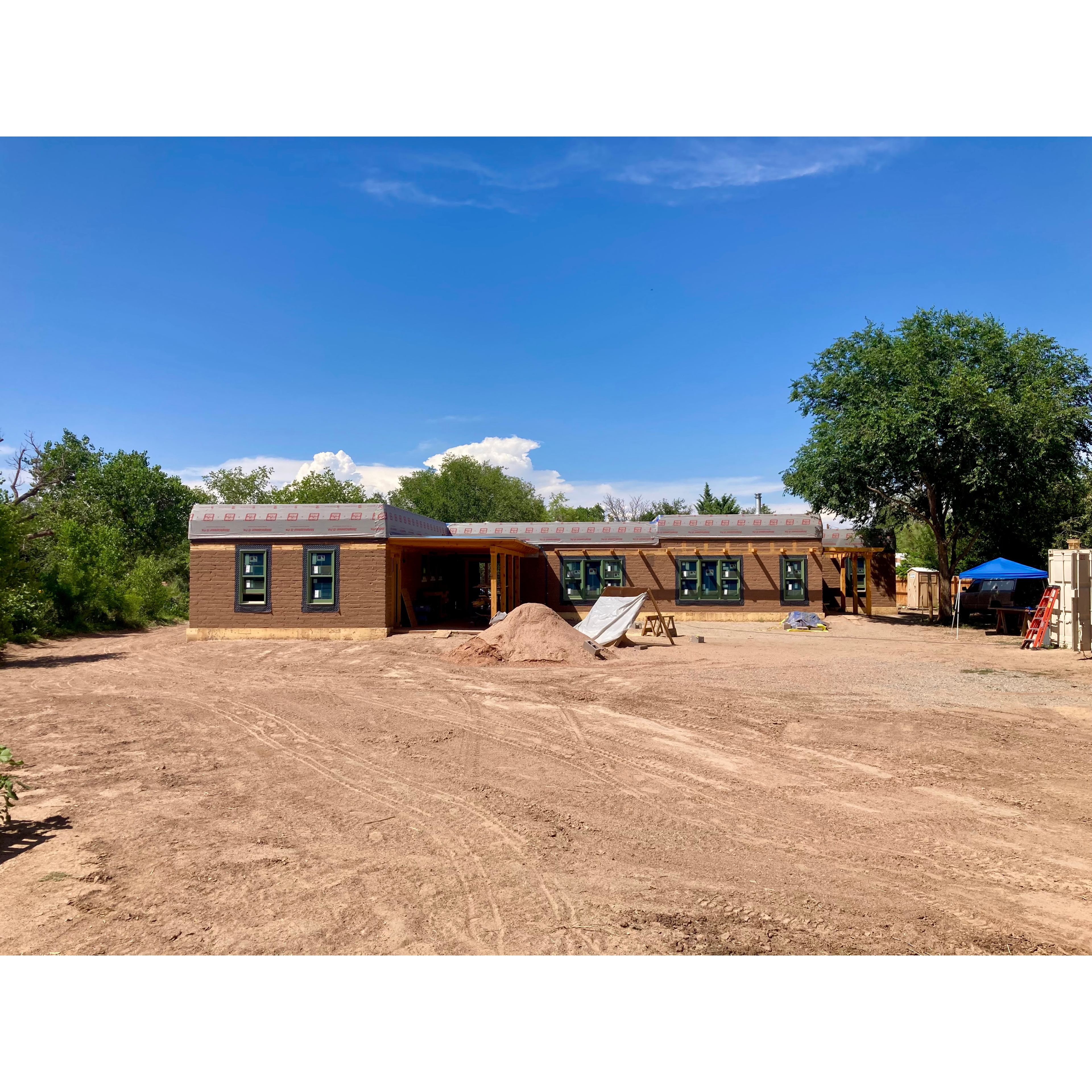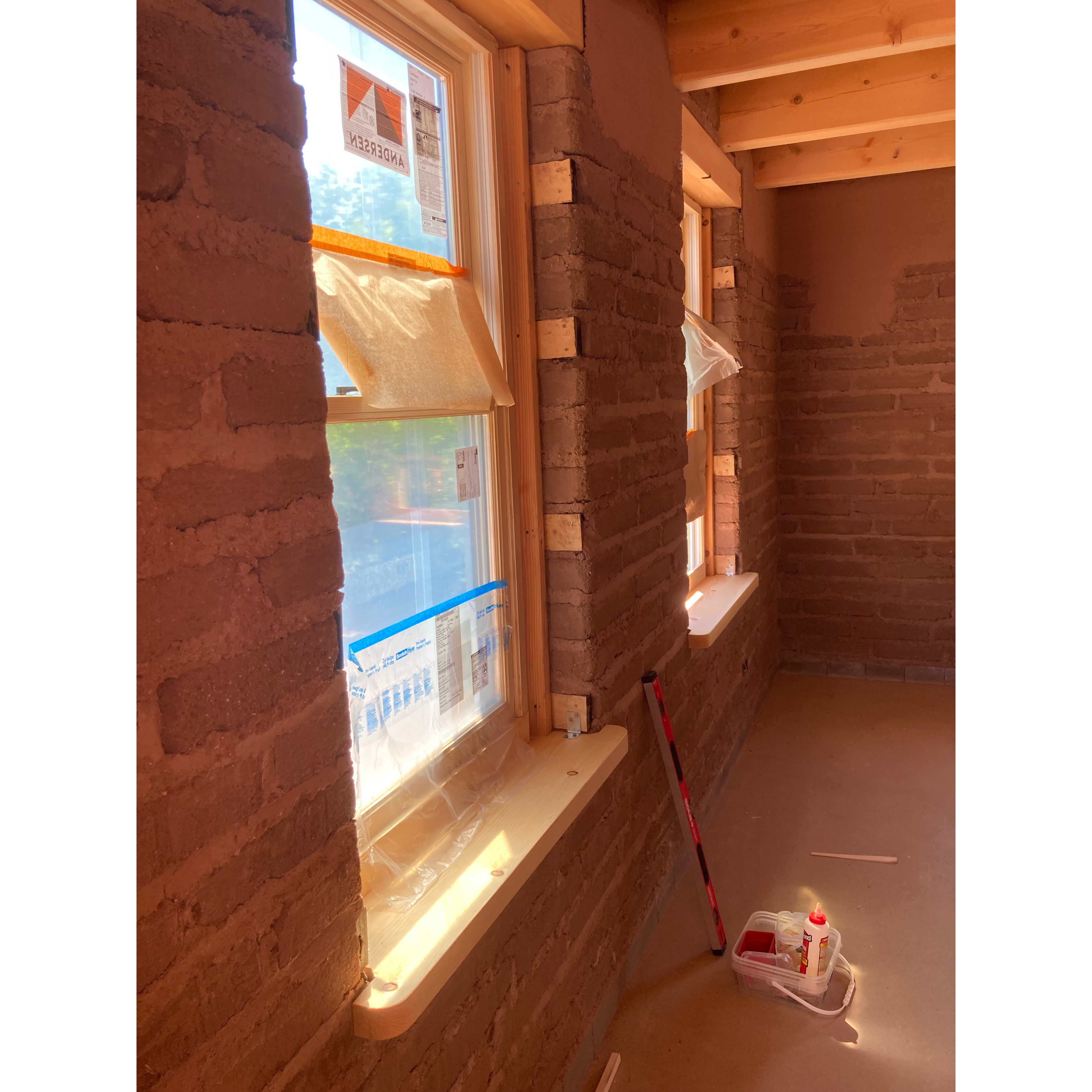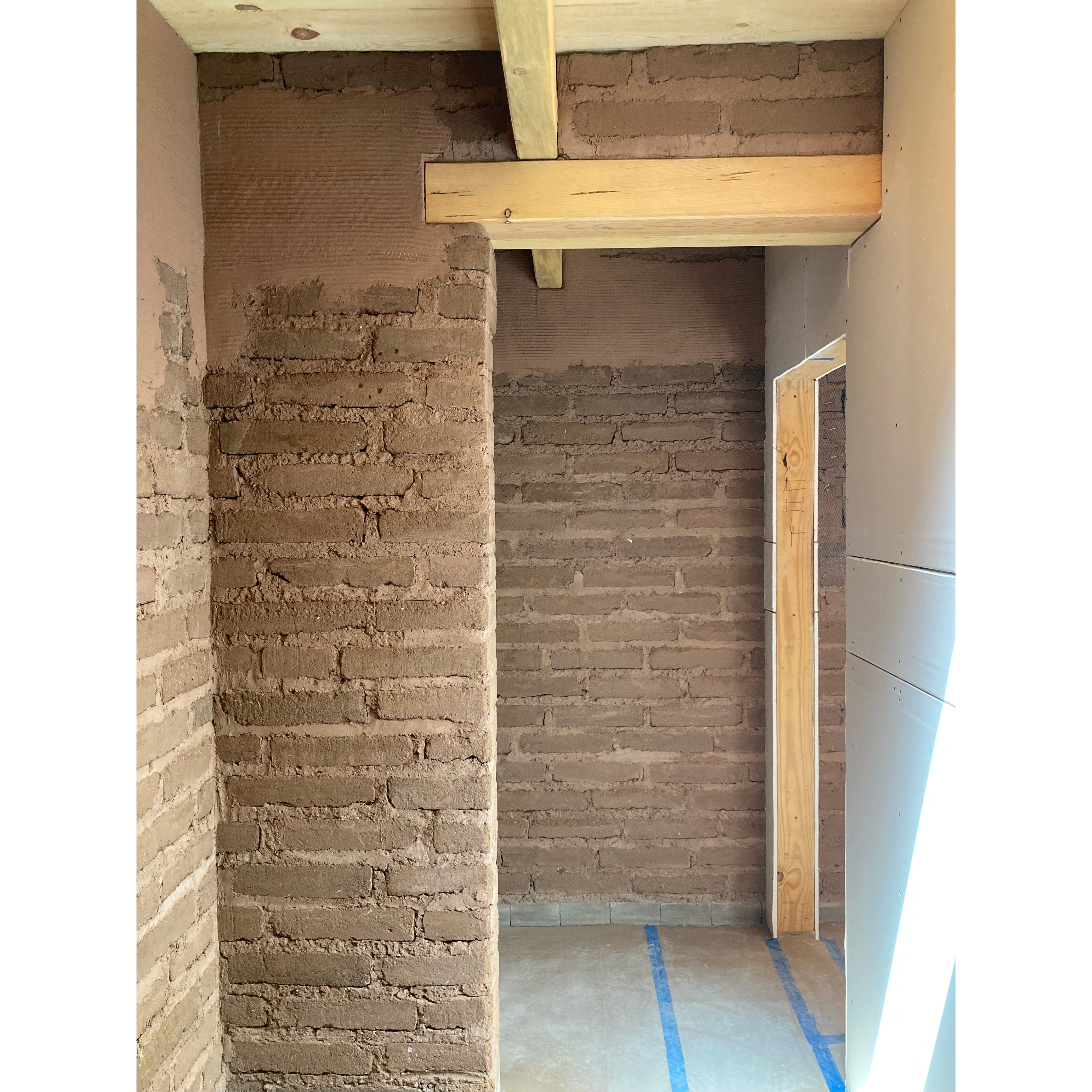 Over the upcoming weeks we’ll be building the exterior doors and mud plastering all the interior walls. Once the doors are in we will add our 2” foam insulation to the outside, and the entire house will receive its three coats of cement stucco. Onward!
